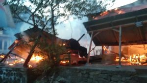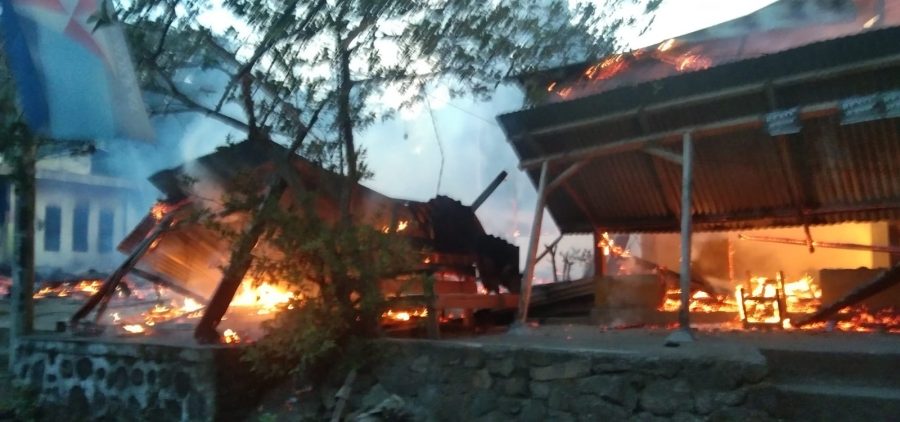 Menurut keterangan kebakaran tersebut terjadi sekitaran pkl 02 wita subuh, dan penyebab kebakaran belum di ketahui. Tapi dari pihak TNI Polri sudah turun di lokasi untuk memeriksa apa penyebab kebakaran tersebut.