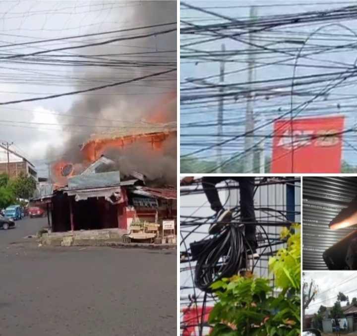 Manado – dibalikfakta.Com – Kebakaran hebat yang melanda salah satu rumah warga yang berlokasi dipertigaan Pasar Karombasan Kota Manado telah menimbulkan dugaan bahwa akar masalah terletak pada kabel listrik yang semrawut dan tidak teratur dan juga kabel jaringan provider yang sering kali di lihat menempel di tiang listrik.