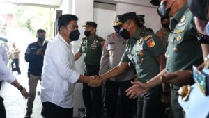 Kasdam XIII/Merdeka Brigjen TNI Luthfie Beta, S, Sos,M.Si bersama Forkopimda Sulawesi Utara turut mengantar keberangkatan Menteri Agraria dan Tata Ruang Marsekal TNI Purn Hadi Tjahjanto S.I.P di Bandara Sam Ratulangi Manado, Kamis (15/9/2022)