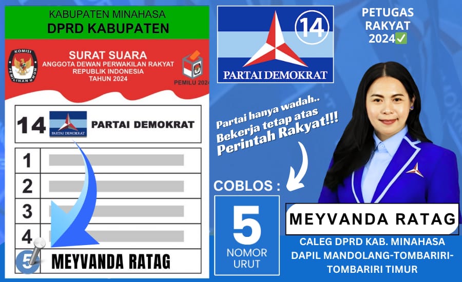 Untuk itu masyarakat Dapil 5 Kecamatan Mandolang, Tombariri dan Tombariri timur ingat tanggak 14 februari nanti jangan lupa coblos Partai Demokrat nomor urut 5 Meyvanda Ratag untuk rakyat sejahtera