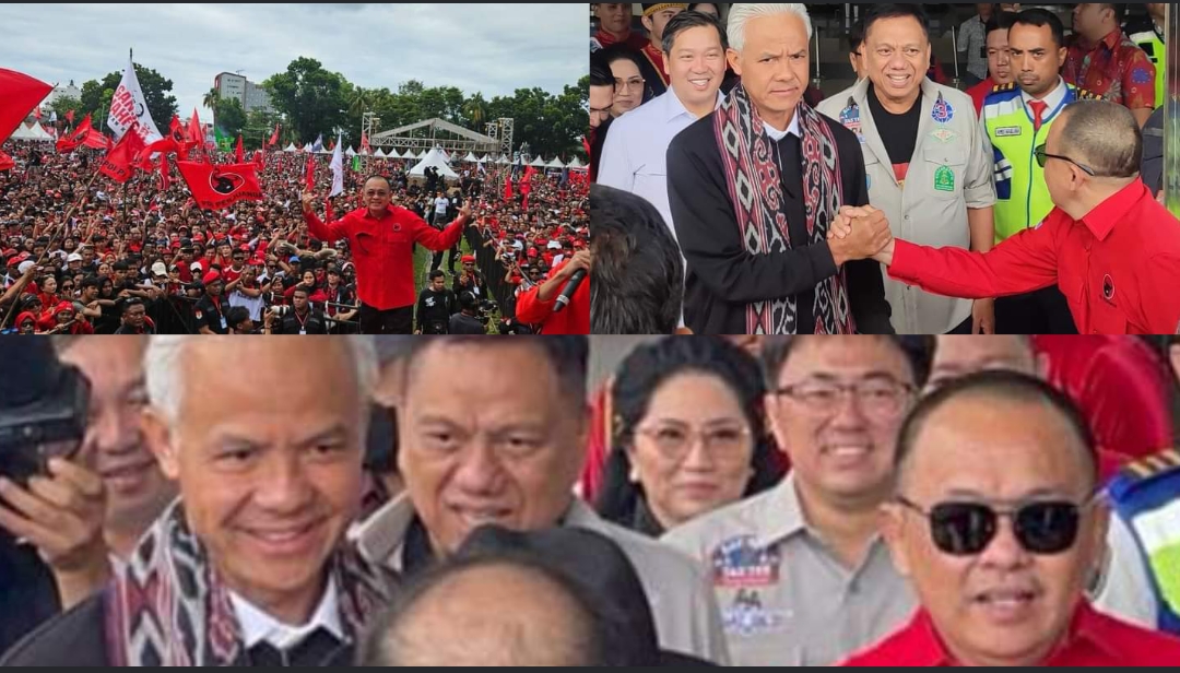 Manado-dibalikfakta.com-Kamis 1-02-2024 Lapangan Koni manado di Meriakan oleh partai PDI perjuangan yang Di hadiri oleh ( Capres) Ganjar pranowo Beserta Wali kota pak OLI Dodokambey dan wakil Steven kandow untuk DPR-Ri.