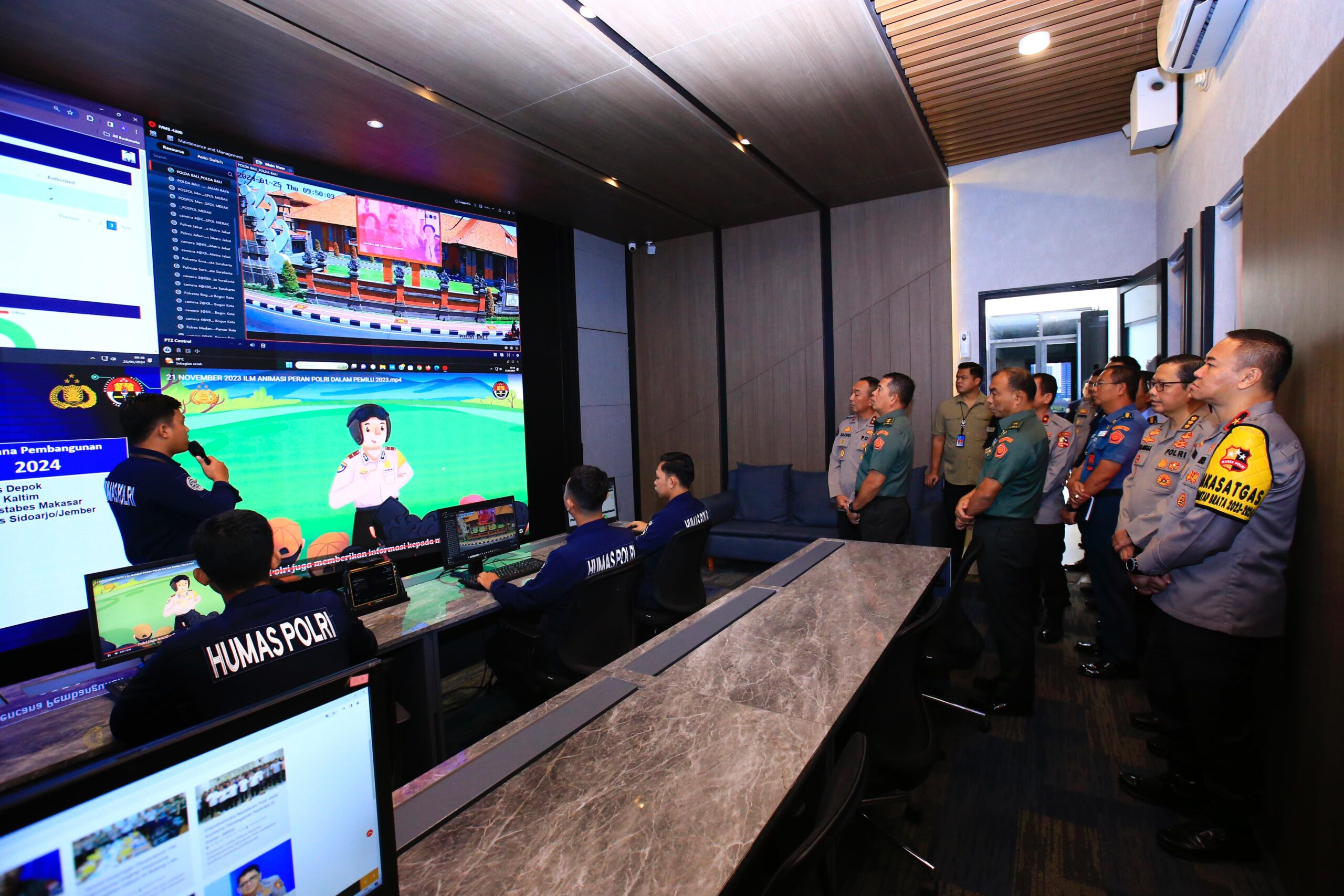 Dalam kunjungan tersebut, Kadiv Humas mengajak Kapuspen TNI beserta rombongan mengunjungi sejumlah ruangan di Gedung Humas Polri. Mulai dari ruang mini conference; command center; SPIT dan Media Hub; mini theater, TB News dan INP; serta Polri TV, dikunjungi.