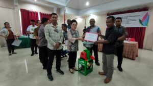 Penyerahan bantuan yang terdiri dari 25 unit Mesin Pencetak Pelet dan 25 unit Mesin Penepung tersebut dilangsungkan di ruang serbaguna rumah jabatan Bupati Kepulauan Sangihe. Bantuan tersebut tidak hanya diterima, melainkan disalurkan langsung kepada perwakilan 19 Kelompok Pembudidaya Ikan di enam Kecamatan Kepulauan Sangihe.