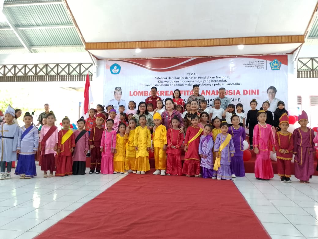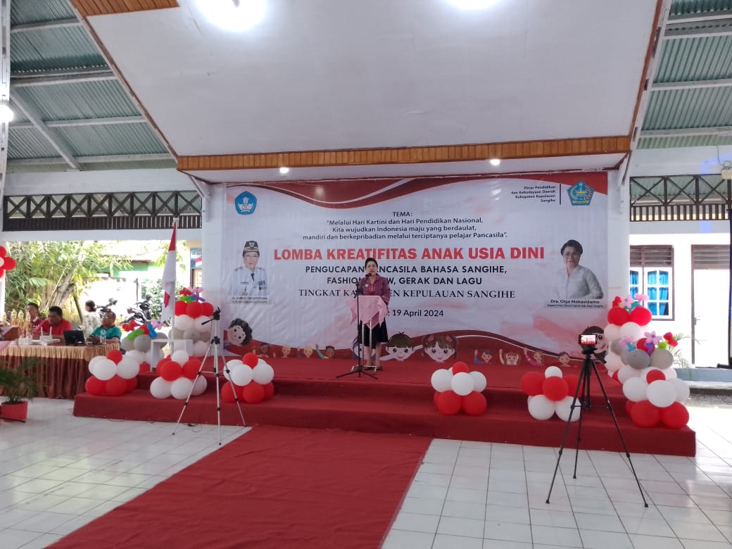 Sangihe,Dibalikfakta.com – Jumat (19/4/24) Dinas Pendidikan dan Kebudayaan Daerah Kabupaten Kepulauan Sangihe selenggarakan lomba Kreativitas Anak Usia Dini Tahun 2024. Dengan Mengangkat Tema “Melalui Hari Kartini dan Hari Pendidikan Nasional, kita wujudkan Indonesia Maju yang Berdaulat, Mandiri dan berkepribadian melalui terciptanya Pelajar Pancasila”