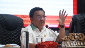 Wali Kota Bitung, Ir. Maurits Mantiri, M.M bersama Sekretaris Daerah Kota Bitung, Ir. Ign. Rudy Theno, S.T,.M.T memimpin rapat EPRA dan PAD yang bertempat di Ruang S.H Sarundajang. (Rabu 12/10/2022).