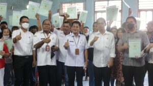 Dibalikfakta.com – Wakil Walikota Hengky honandar S.E di dampingi sekretaris daerah Ir. Ing. Rudy theno st, MT dan asisten ll Drs. Sikamang map. Menghadiri kegiatan penyerahan sertifikat ptsl (pendaftaran tanah sistematis lengkap) bertempat di kelurahan pinokalan kecamatan ranowulu.