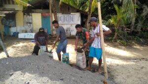Sangihe, Koramil 1301-03/Tamako, Melaksanakan karya bakti pembangunan bangsal bersama warga masyarakat Desa Binala kec Tamako, Rabu (15-03-2023).