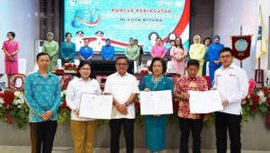 Wali Kota Bitung Ir. Maurits Mantiri MM menghadiri puncak peringatan Hari Kesatuan Gerak (HKG) PKK Kota Bitung Ke – 51 yang dilaksanakan di Aula SH Sarundajang, Jumat (28/04/2023).