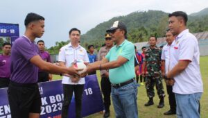 Sangihe – Dibalikfakta.com – Pembukaan Turnamen sepak bola KU 18 tahun 2023 diikuti oleh 19 Tim sepak bola yang dibuka langsung oleh asisten 1 di lapangan sepak bola kampung Tariang Lama kecamatan Kendahe.