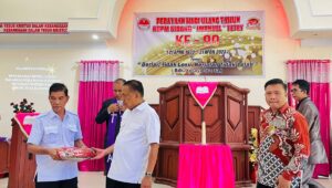 Olly Dondokambey, membagi langsung bibit Jagung, tanaman perkebunan, dan buah buah, sangat puas dan suka cita dirasakan jemaat KGPM.