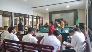 Minahasa – Diibalikfakta. Com Sidang perkara perdata N0.380/ Pdt.G/2022/PN.Tnn antara Wenny Lumentut sebagai Penggugat melawan Jolla Juversien Benu dkk sebagai Tergugat pada tanggal 24 Mei 2023 masih agenda pembuktian saksi dari Tergugat dan tergugat menghadirkan dua orang saksi yaitu saksi Fredrik Rengkung, SH sebagai saksi fakta dan H. Masyhud Asyhari, SH sebagai saksi ahli.