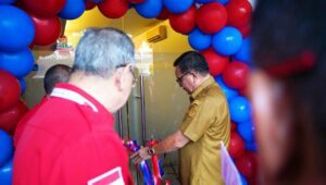 Wali Kota Bitung, Ir. Maurits Mantiri MM memghadiri peresmian kantor kas Bitung Bank Prisma Dana yang berlokasi di Jalan Sam Raulangi, Kecamatan Maesa, Kota Bitung, Senin (05/06/2023).