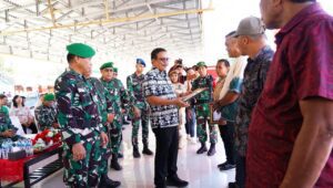 Selanjutnya, Wali Kota bersama Kasdam dan jajaran melakukan peninjauan lokasi TMMD ke 116 di kelurahan Tandurusa dan penyerahan 1 unit rumah serta bantuan bagi anak yatim.