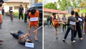 Minahasa Utara – Dibalikfakta. Com Sadis benar, khasus pembunuhan di desa Talawaan, Kecamatan Talawaan Kabupaten Minahasa Utara, Provinsi Sulawesi Utara ( SULUT ) pasalnya korban sudah tidak berdaya karena aniaya terlebih dahulu sebelum di bunuh. Rekonstruksi pembunuhan yang berlangsung di Polres Minahasa Utara yang di gelar hari ini, dan berjalan lancar sebab kemarin sempat ricuh, karena keluarga korban menyerang pelaku.