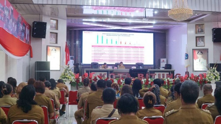 Wakil Walikota Bitung Hengky Honandar,S.E Memimpin Rapat Evaluasi Pendapatan Asli Daerah,yang bertempat di Ruang Sarundajang Kantor Walikota Bitung,Selasa 11 Juli 2023