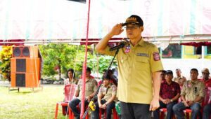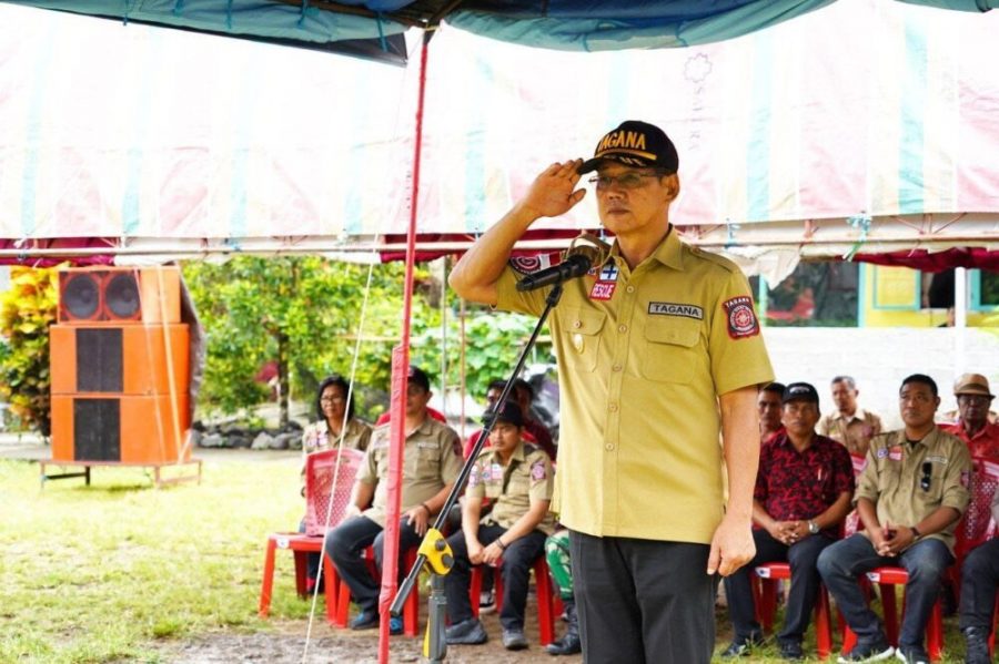 Wakil Wali Kota Bitung, Hengky Honandar SE pimpin Apel Siaga dan Simulasi serta Pengukuhan Pengurus Kampung Siaga Bencana (KSB) Kota Bitung, Kecamatan Lembeh Utara, Sabtu (15/07/2023).