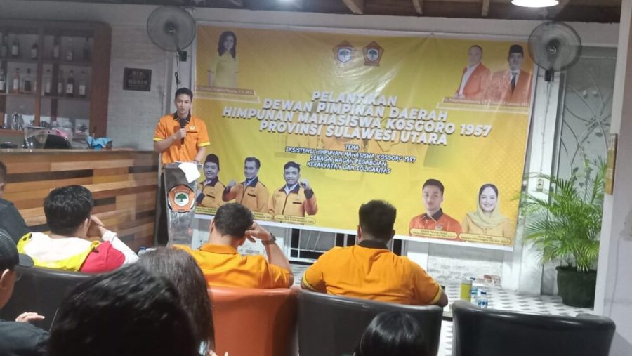 MANADO, dibalikfakta.com – Pelantikan Himpunan Mahasiswa Kosgoro 1957 yang dilaksanakan di cafe sario Kota Manado Senin, 17 Juli 2023 . Pelaksanaan pelantikan tersebut, di hadiri para petinggi – petinggi Partai Golkar Sulut di antaranya, Razki Mokodompit, Careig Naichel Runtu, Yongky Limen, Ibu Lina Pusung, Ketua Umum Himpunan Mahasiswa Kosgoro 1957, Gammal Bachri Syamsul, Sekjen Aris Burhanuddin, Bendum, Wisnu Sari Nugroho, Ketua Barisan Muda Kosgoro, Reynald Tuwaidan dan seluruh pengurus DPD 1 Himpunan Mahasiswa Kosgoro Provinsi Sulawesi Utara