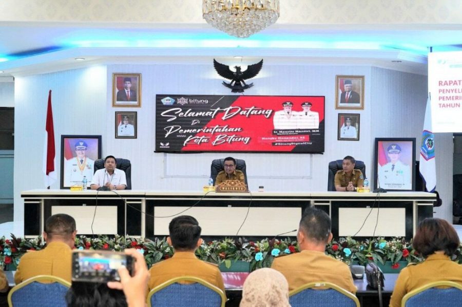 Wali Kota Bitung Ir. Maurits Mantiri MM membuka Rapat Kerjasama Oprasional Verifikasi dan Validasi Data Pekerja Rentan bersama BPJS Ketenagakerjaan Kota Bitung, yang bertempat di lantai 4 kantor Walikota Bitung Senin (24/07/2023).
