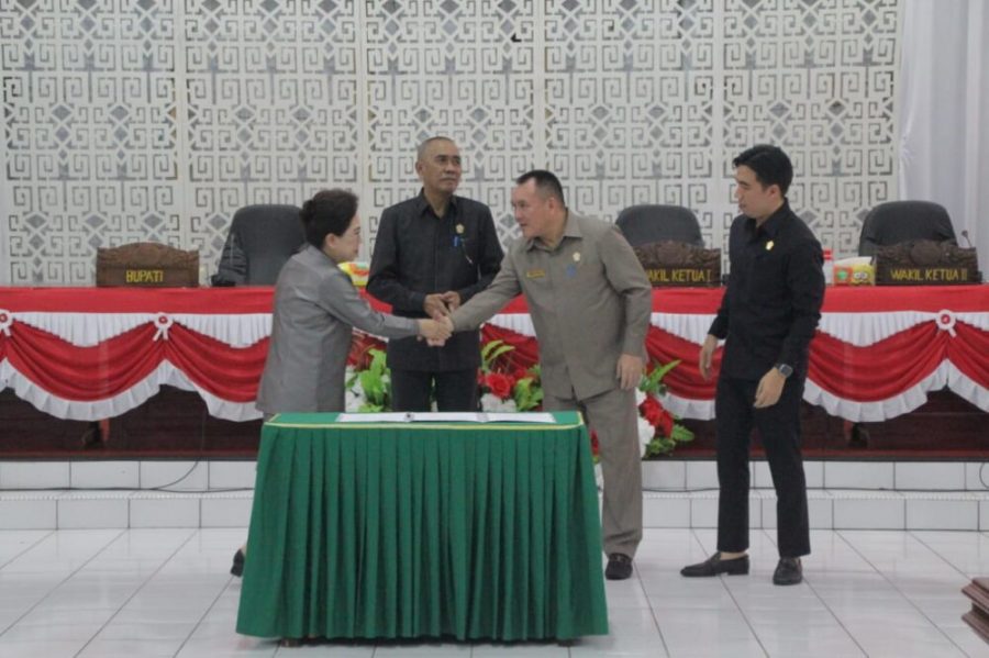 Finalisasi itu langsung ditindak lanjuti dengan penandatanganan berita acara oleh Pj Bupati dr.Rinny Tamuntuan bersama Pimpinan Dewan Josephus Kakondo, Ferdy Sondakh dan Michael Thungari.