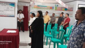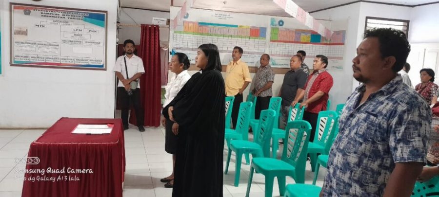 Sangihe – Dibalikfakta.com – Pengambilan Sumpah Jabatan dan Pelantikan Perangkat kampung Menggawa Jabatan Kepala lendongan 6 atas nama Elisabet Daulu. Rabu (2/8/2023) bertempat di kantor Kapitalaung kampung Menggawa.