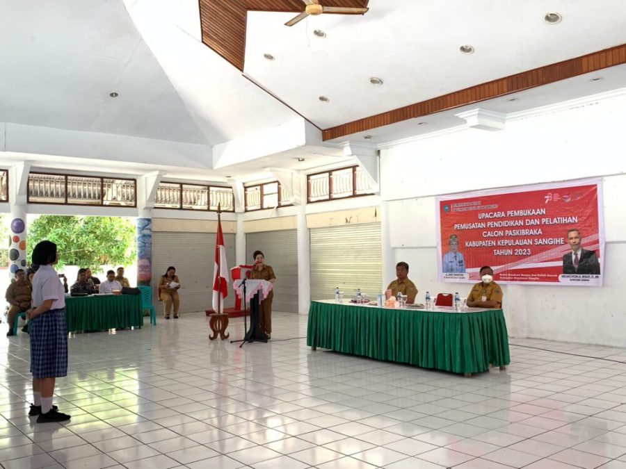 Sangihe – Dibalikfakta.com – Penjabat Bupati Sangihe dr.Rinny Tamuntuan pimpin Upacara Pembukaan Pemusatan Pendidikan dan Pelatihan Calon Paskibraka Kabupaten Kepulauan Sangihe Tahun 2023. Senin (7/8/2023) di Pendopo Rumah Jabatan Bupati.