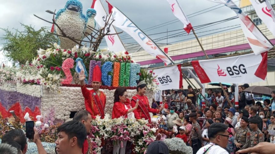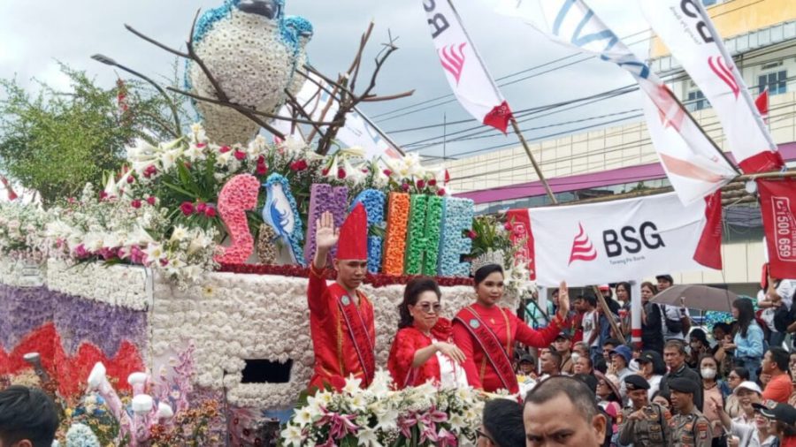 Namun menariknya, dari sekian peserta yang ada; Pemerintah Daerah Kabupaten Kepulauan Sangihe melalui Dinas Pariwisata menampilkan sesuatu yang diluar ekspektasi semua orang. Sebab dalam parade kendaraan hias kali ini, Penjabat Bupati Kepulauan Sangihe, dr Rinny Tamuntuan ikut serta di atas kendaraan hias dan menyapa para tamu undangan serta masyarakat yang menyaksikan. Didampingi pasangan Ungke-Momo Sangihe, membuat Tamuntuan pun tampak semakin elok dan mempesona di atas kendaraan hias yang menampilkan potensi daya tarik wisata Sangihe.
