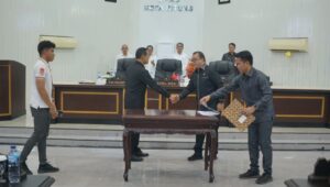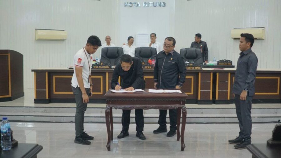 Bertempat di Ruang Sidang Kantor DPRD Kota Bitung Wakil Walikota Bitung Hengky Honandar,S.E didampingi Sekretaris Daerah Kota Bitung Ir.Ign Rudy Theno,S.T M.T Mengikuti Rapat Paripurna Kedua Masa Persidangan Pertama Tahun Sidang 2023-2024 Dalam Rangka Penandatanganan Nota Kesepakatan Antara Pemerintah Kota Bitung Tentang Kebijakan Umum APBD Serta Prioritas dan Plafon Anggaran Sementara Tahun Anggaran 2024.hari Jumat 11 Agustus 2023.