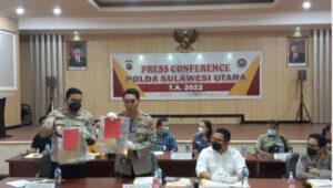 Conference Polda Sulawesi Utara,dipimpin Kombes pol Jules Abraham Abast, Kabid Humas, Terkait Kasus Penembakan Warga di Kelurahan Pandu Kecamatan Bunaken kota Manado Sulawesi Utara Beberapa Waktu Lalu menurut Polisi Petugas Terpaksa Harus Melepaskan Tembakan Terukur Lantaran Dalam Keadaan Terancam Kamis 18-08-22.
