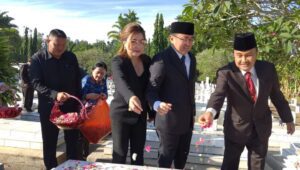 MANADO, dibalikfakta.com 16 Agustus 2023 Walikota dan Wakil Walikota Manado Andrei Angouw dan dr. Richard Sualang serta Ketua TP PKK Kota Manado, Irene Angouw Pinontoan Ziarah Ke Taman Makam Pahlawan (TMP) Kairagi Manado.