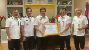 Hadir membawa dan menyerahkan Penghargaan tersebut, Kepala Bagian Tata Pemerintahan Setda Kota Manado, Camat Tuminting, Reyn Hedemans, Lurah Tumumpa Dua, Reynaldy Kalesaren dan Staf Khusus Wali Kota Manado, Judy Serang. (Isnu)