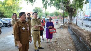 Dalam tinjauan lapangan ini, Walikota didampingi Kadis PUPR Kota Manado, Jhonny Suwu S.T. Di Lokasi ini Walikota Manado dan tim melihat perbaikan drainase yang sedang dilakukan. Di Lokasi ini juga rencananya akan dibuat pedestrian kota yang nantinya menjadi tempat pejalan kaki warga.