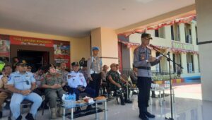 Kegiatan apel gelar pasukan tersebut mengambil tema “Cipta Kondisi Kamseltibcarlatas Yang Kondusif Menuju Pemilu Damai 2024.”