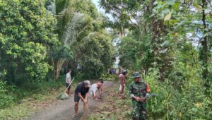 Sangihe – dibalikfakta.com – Sertu Jhon Kaelung Babinsa Koramil 1301-03/Tamako, Bertempat di Kampung Kalinda Satu Kecamatan Tamako Kabupaten Kepulauan Sangihe, Melaksanakan kerja bakti dalam rangka pembersihan jalan Kampung. Jumat 15/09/2023.